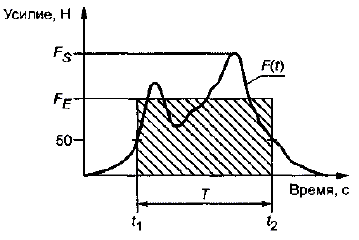 Ж.2.3. Действующее усилие F_E является средним значением соотношения усилия закрытия и продолжительности импульса