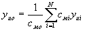 5.3. В случае использования машинного (ориентированного на применение ЭВМ) алгоритма объединения группы из N точечных источников значения с_м = с_мо, х_м = х_мо, u_м = u_мо, а также координаты размещения х_u = х_uо, у_u = у_uо для условного источника, заменяющего объединяемую группу, определяются по формулам: