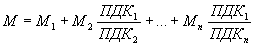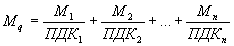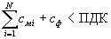 где M_i (М_1, М_2,..., M_N) - такие значения выброса от каждого источника, которые приняты при расчетах загрязнения атмосферы от всей совокупности источников и при которых максимальная суммарная концентрация в атмосфере при неблагоприятных метеорологических условиях не превышает ПДК – c_ф или 0,8 ПДК – c_ф на территориях, подлежащих особой охране (см. п. 8.3).