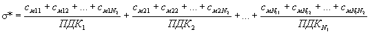 8.5.13. При наличии группы из нескольких источников выброса значения ПДВ (ПДВ_1, ПДВ_2,... , ПДВ_N) для каждого (i-го) источника находятся по формуле
