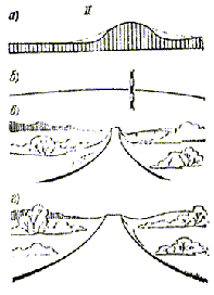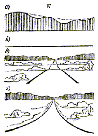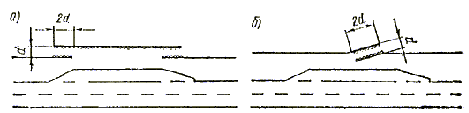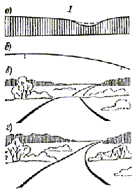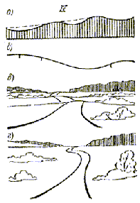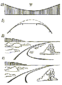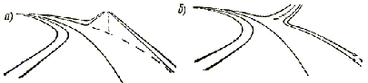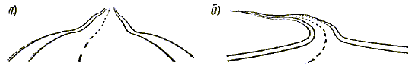 д) где у водителя исчезает ориентировка в дальнейшем направлении дороги или возникает неправильное представление о нем (поворот в плане непосредственно за выпуклой кривой, неожиданный поворот в сторону с примыканием второстепенной дороги по прямому направлению);
