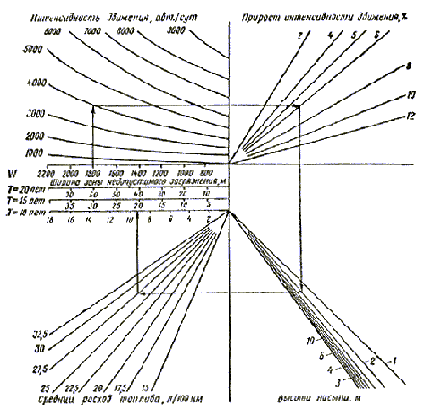 Х = 1 - расстояние от застройки 15-20 м, имеются тротуары или пешеходные дорожки;
