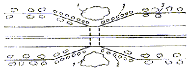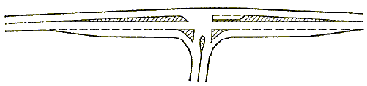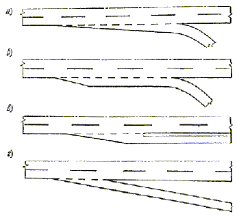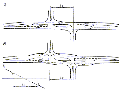 в) уширением проезжей части для разделения потока автомобилей по составу (дополнительные полосы на подъемах, на пересечениях, полосы для местного движения, для автобусов) и обеспечения оптимальной загрузки, при которой движение происходит с достаточно высокими скоростями;