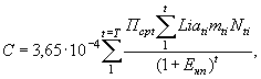 где С_ср - средний размер потерь от одного происшествия в t-м году; l_i - протяженность i-го однородного участка дороги; m_ti - итоговый стоимостной коэффициент, учитывающий влияние дорожных условий на тяжесть происшествий;