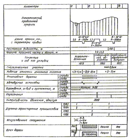 В последующих строках размещаются показатели, характеризующие дорожные условия соответственно на каждом однородном участке.