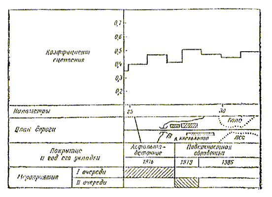 б) устранением при реконструкции дорог минимальных значений технических параметров плана и профиля, проложением дорог вне населенных пунктов на достаточном от них удалении для исключения влияния пешеходного движения,