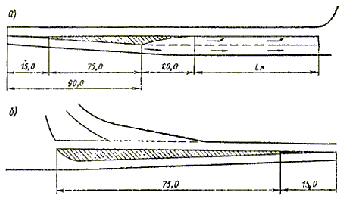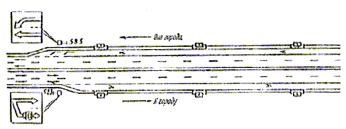 в) не учитывают участки постепенного снижения скорости, необходимые для безопасного въезда на кривые малых радиусов, на пересечения, узкие мосты, т.е. берут соотношение скорости, обеспечиваемой данным участком, и максимально возможной скорости в конце предшествующего участка.