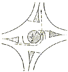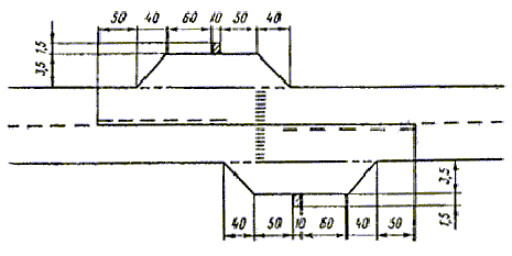 Т = 3 - частично канализированное пересечение с шириной проезжей части 7-7,5 м.