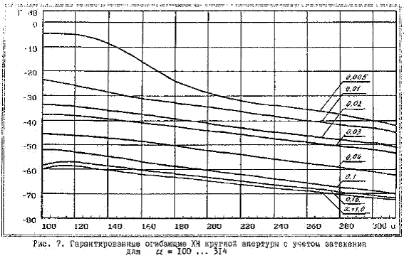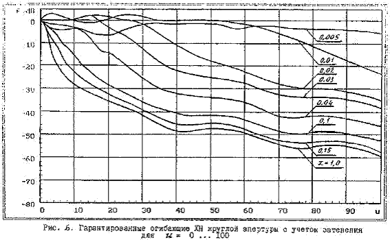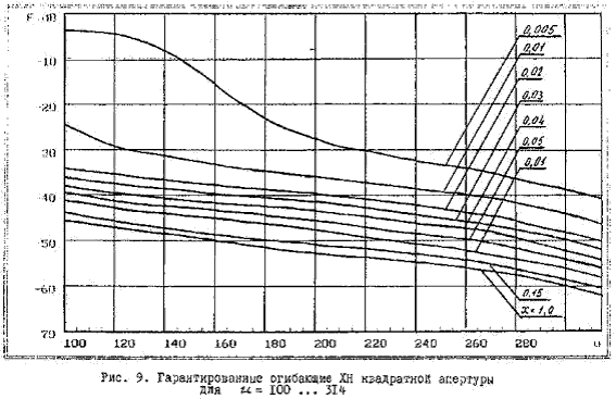 4.12. Графики гарантированной огибающей для различных x, приведенные на рис. 6 - 9, являются универсальными, т.е. они справедливы для апертур любых размеров при условии, что линейные размеры антенны существенно превышают длину волны.