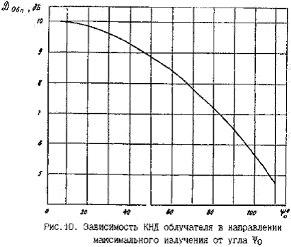 4.13. Величина Dобл, дБ = 10 lg Dобл определяется ХН облучателя. По выбранному закону распределения поля по апертуре (4.4) или (4.5), используя геометрические характеристики зеркала d и о, можно записать аналитическое выражение Fобл(