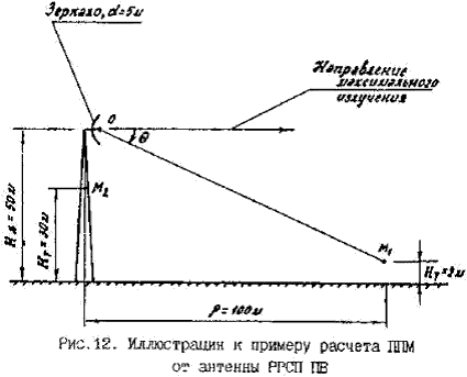 6.4.10. По формуле (4.14) рассчитывается ППМ, создаваемая в точке М антенной А1 - П1: