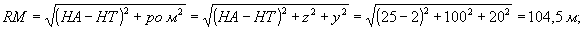 6.6.1. Находится расстояние Rм и угол м:
