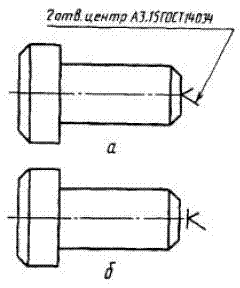 Если центровые отверстия в готовом изделии недопустимы, то при этом указывают знак (черт. 4б).