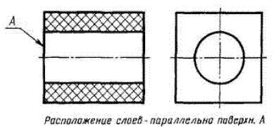 3.1.14. Сварное, паяное, клееное и тому подобное изделие из однородного материала в сборе с другими изделиями в разрезах и сечениях штрихуют в одну сторону, изображая границы между деталями изделия сплошными основными линиями (черт. 35). Допускается не показывать границы между деталями, т.е. изображать конструкцию как монолитное тело.