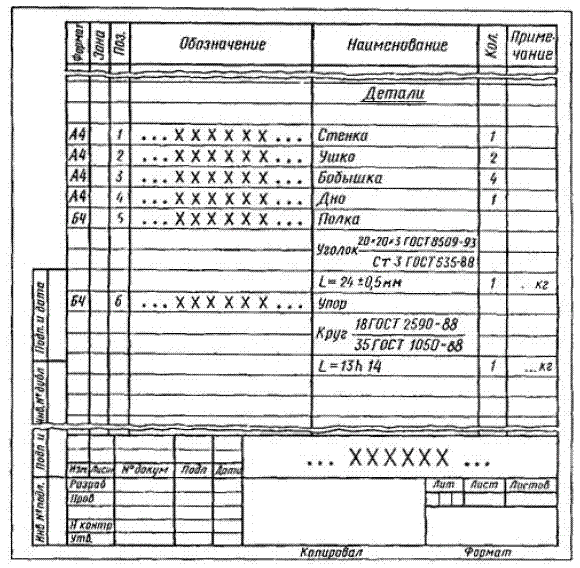 3.3.3. Когда для изготовления по сборочному чертежу детали несложной конфигурации (без выпуска на нее самостоятельного чертежа) устанавливается определенный сортовой материал, то соответствующие размеры детали приводят в спецификации.