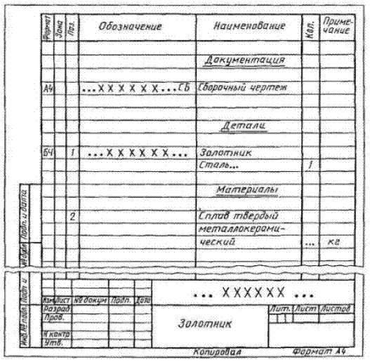 3.3.7. Направляемые металл, сплав, пластмассу, резину и другие материалы, которыми заливают армирующие детали, записывают в спецификацию сборочной единицы в раздел "Материалы".