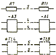 При присвоении элементам (устройствам, функциональным группам) обозначений должны быть учтены элементы (устройства, функциональные группы), не изображенные на схеме (черт. 2.). Над штриховой линией при этом указывают общее количество одинаковых элементов. Элементы в этом случае записывают в перечень элементов в одну строку.