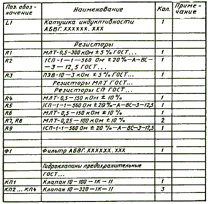 Перечень элементов записывают в спецификацию после схемы, к которой он выпущен.