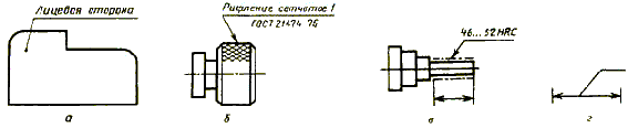 На конце линии-выноски, отводимой от всех других линий, не должно быть ни стрелки, ни точки (черт. 1г).