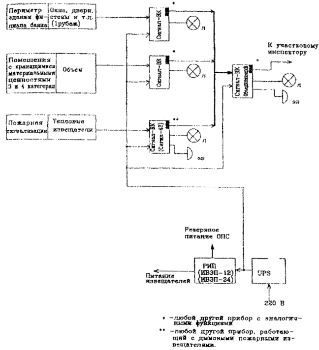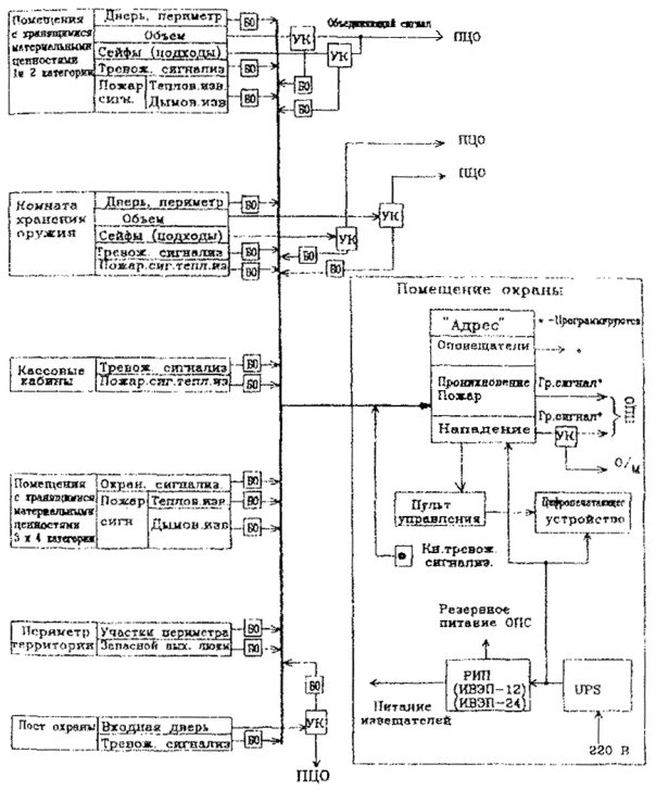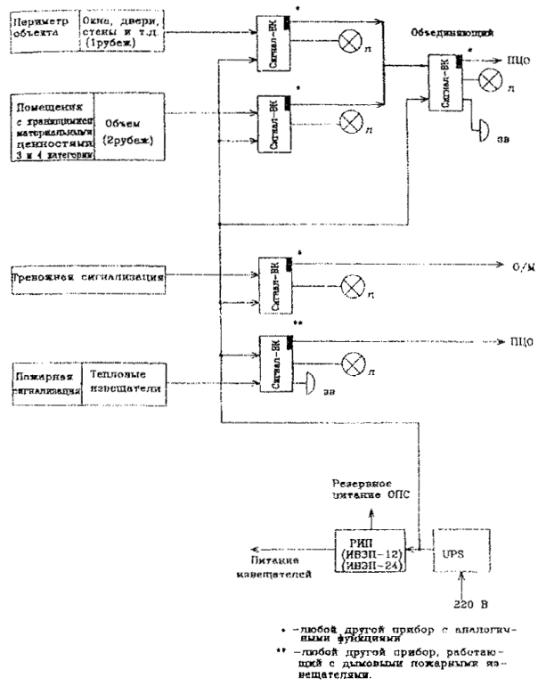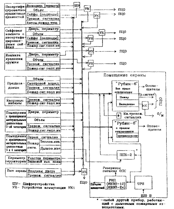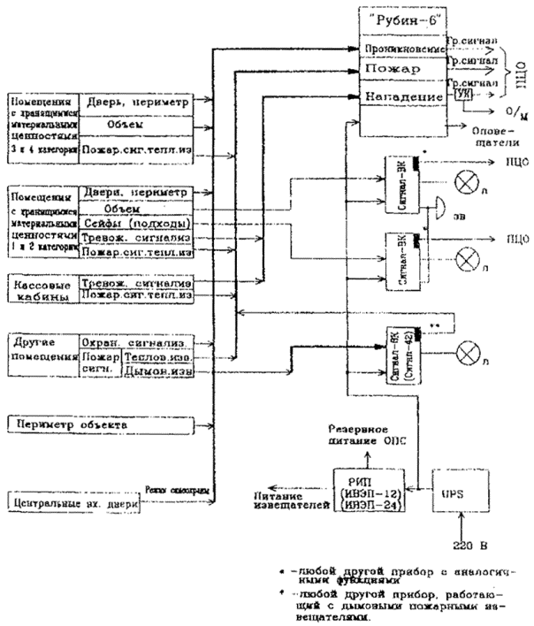 Рис. 7. Примерная структурная схема оборудования объекта средствами ОПТС на базе приборов "Рубин -6" и "Сигнал-ВК" по варианту 5