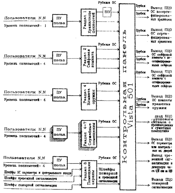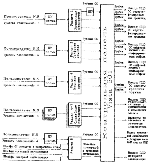 Рис. 6. Примерная структурная схема оборудования объекта средствами ОПТС на базе объектовой подсистемы VISТА-501 по варианту 4