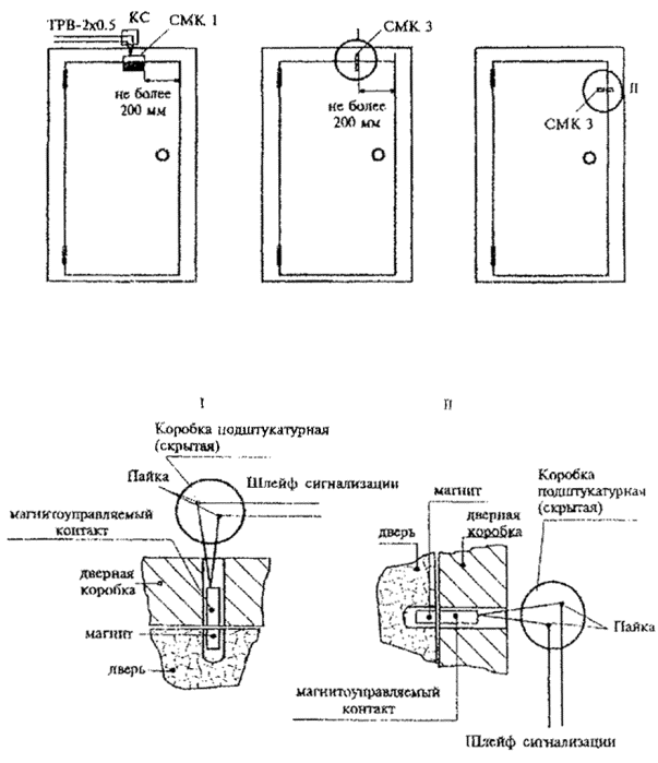 Рис. 1. Блокировка двери на открывание извещателями магнитоконтактными