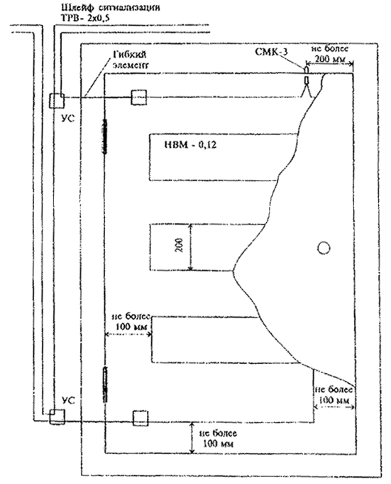 Рис. 4. Блокировка оконных решеток, решеток воздуховодов и решетчатых дверей проводом НВМ