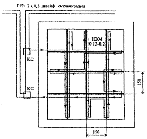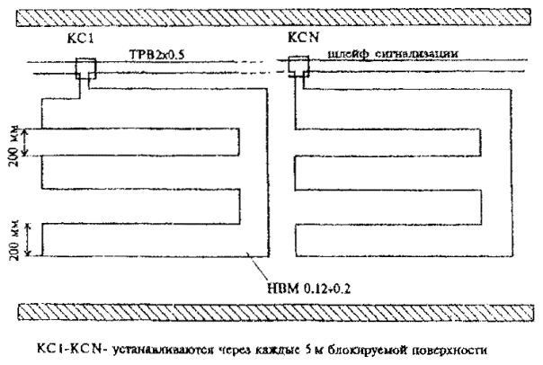 Рис. 5 Блокировка стен, полов и потолком проводом НВМ