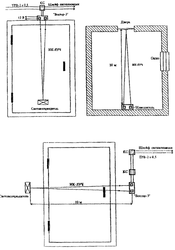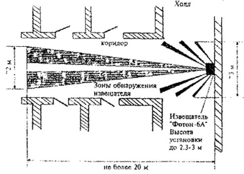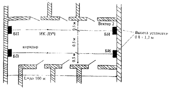 Рис. 10. Блокировка коридора извещателями оптико-электронными
