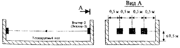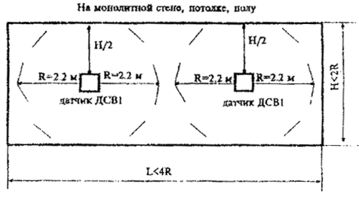 Рис. 7. Блокировка стен, потолка и пола на пролом извещателем поверхностным "Грань-2"