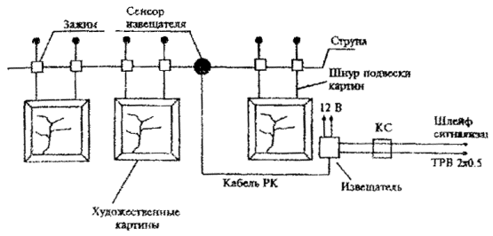 Рис. 8. Блокировка отдельных предметов извещателем поверхностным пьезоэлектрическим "Гюрза-050"