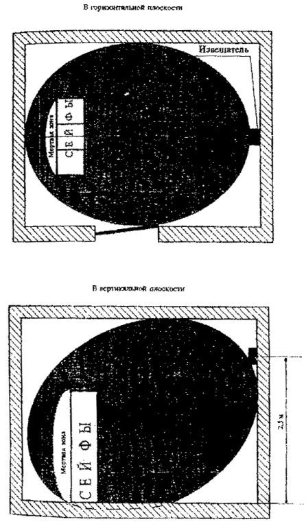 Рис. 12. Блокировка сейфов (предметов) объемными радиоволновыми, ультразвуковыми и комбинированными извещателями оптико-электронными