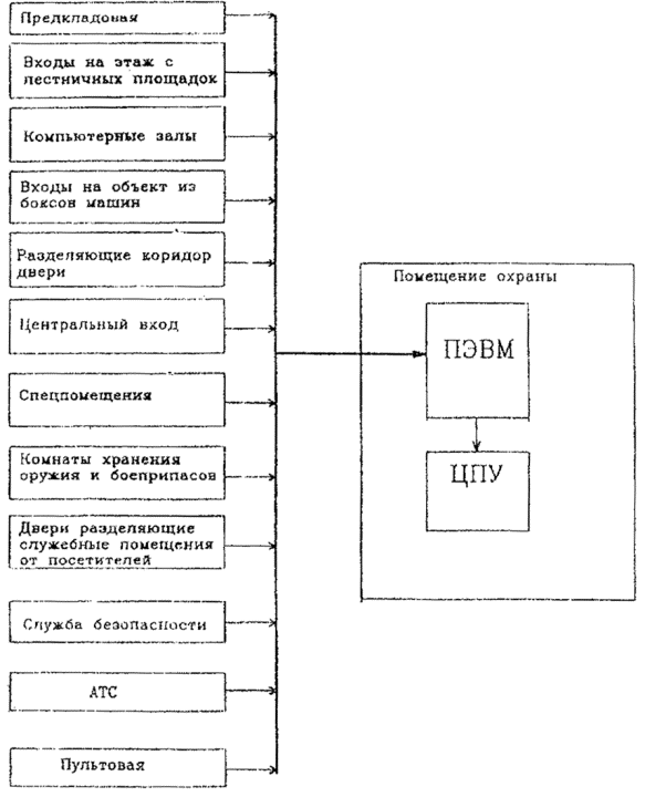 Рис. 1. Примерная структурная схема оборудования объекта системой контроля доступа