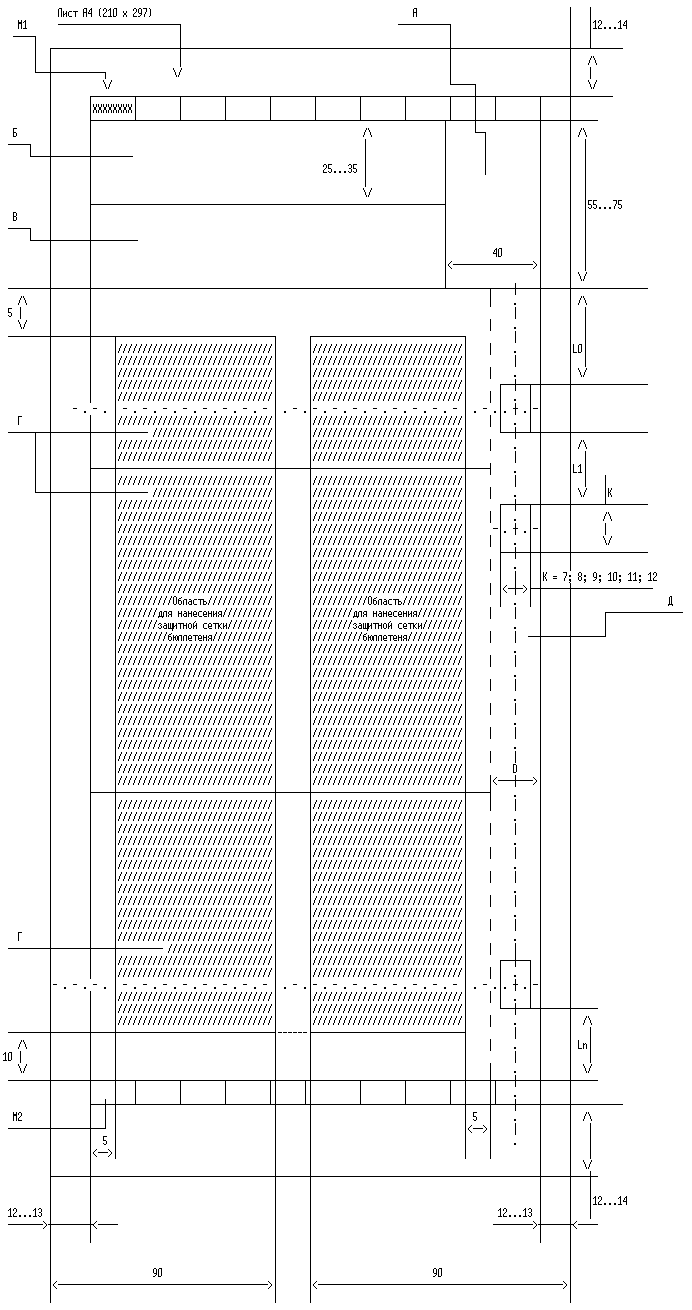 Текст бюллетеня печатается в одну краску черного цвета и размещается только на одной (лицевой) стороне бюллетеня. Защитная сетка и микрошрифт (в случае его использования) наносится типографским способом на другой (оборотной) стороне бюллетеня либо на лицевой стороне бюллетеня строго в зоне, указанной на чертеже. В случае использования для защиты специального знака (марки) он размещается только на оборотной стороне бюллетеня строго в районе зоны для печати участковой комиссии не ближе 15 мм от края листа.