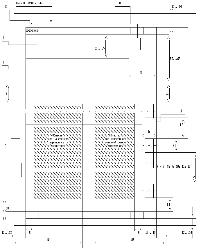 Бюллетени для голосования на выборах с использованием КОИБ изготавливаются типографским способом в соответствии с формой, представленной на рисунке 1, по чертежам, представленным на рисунках 2, 3, 4.