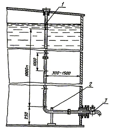 2.3.2. Точечные пробы нефти или нефтепродукта из вертикального цилиндрического или прямоугольного резервуара отбирают стационарным (см. черт. 2) или переносным пробоотборником с трех уровней: