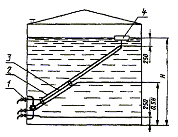 нижнего: для нефти - нижний срез приемо-раздаточного патрубка (хлопушки) по внутреннему диаметру, для нефтепродукта - на 250 мм выше днища резервуара.