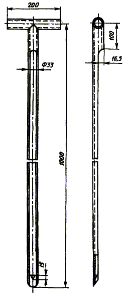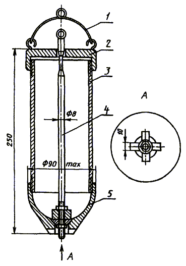 2.4.3. По требованию потребителя из горизонтального цилиндрического резервуара донную пробу нефтепродукта отбирают переносным металлическим пробоотборником (см. черт. 4 и 5).