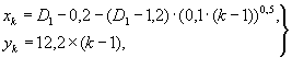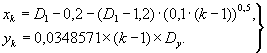 Поскольку D_y < 350 мм, для определения параметров x_k и y_k пользуемся формулами (2). Результаты расчетов сводим в табл. 2.