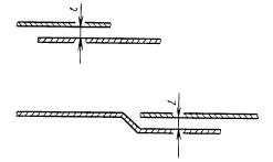 2.1.2. При наличии зазора (l) между листом металла и расположенной под ним поверхностью более 0,7 мм (черт. 2) кромки листа металла должны соответствовать требованиям п. 2.1.1.