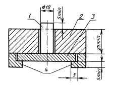 1 - точки фиксирования; 2 - контрольные метки; 3 - пластины держателя; 4 - образец