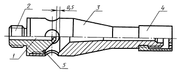 1 - дроссельная трубка; 2 - газовое сопло; 3 - трубка горелки; 4 - стабилизатор пламени; 5 - выемка
