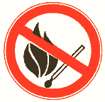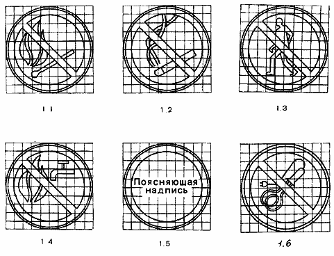 Допускается применять запрещающие знаки с поясняющей надписью, выполненной шрифтом черного цвета. При этом наклонную красную полосу не наносят. На знаках пожарной безопасности поясняющие надписи необходимо выполнять красным цветом.