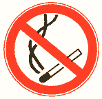 3.10.2. Знаки должны быть следующими: круг красного цвета с белым полем внутри, белой по контуру знака каймой и символическим изображением черного цвета на внутреннем белом поле, перечеркнутым наклонной полосой красного цвета (угол наклона 45°, слева сверху направо вниз). Ширина кольца красного цвета должна быть 0,09-0,1 внешнего диаметра, а ширина наклонной красной полосы - 0,08 внешнего диаметра, ширина белой каймы по контуру знака - 0,02 внешнего диаметра.