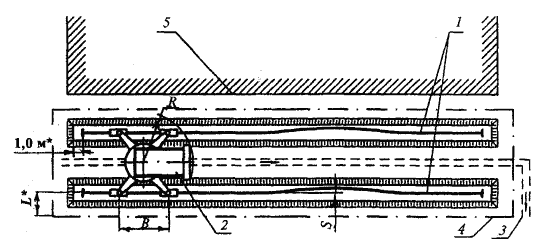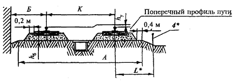 L<*>- расстояние от оси (торца) рельса до ограждения (не менее размера "Б").