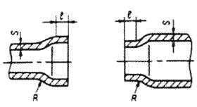 Расстояния l и l_1 от оси заготовки выпуклых днищ, за исключением полусферических, до центра сварного шва должны быть не более 1/5 внутреннего диаметра днища.