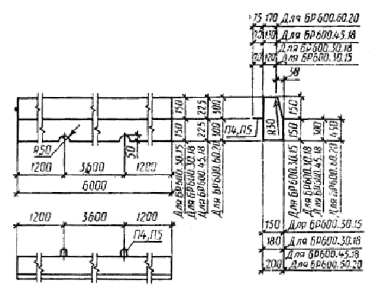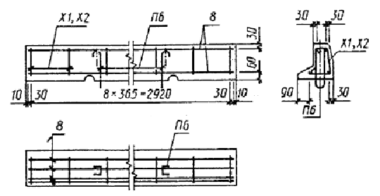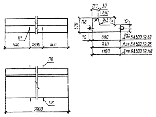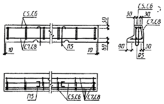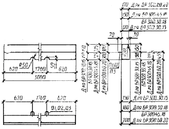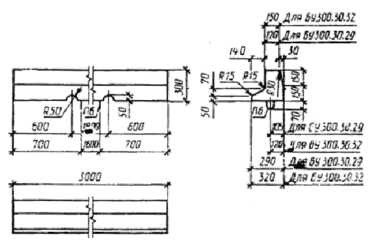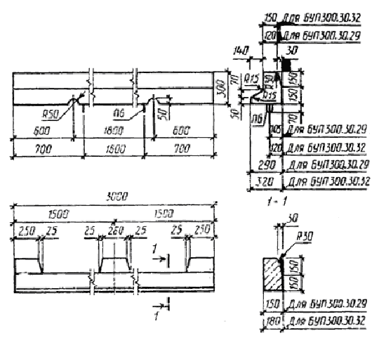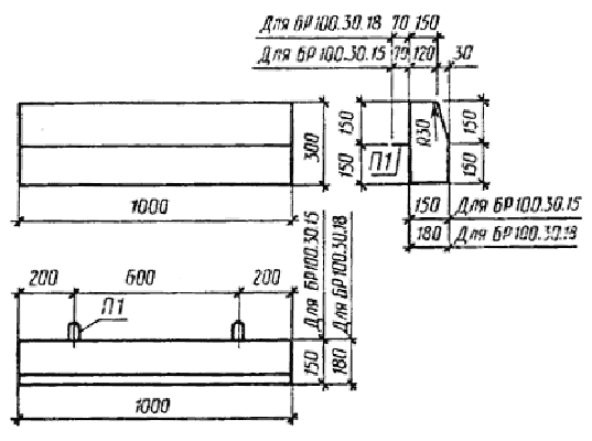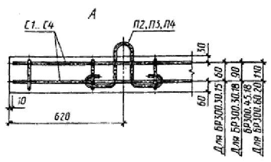 Примечание. Допускается замена в камнях марок БР300.30.15, БР300.30.18, БУ300.30.29, БУ300.30.32, БУП300.30.29, БУП300.30.32 стержневой горячекатаной арматуры периодического профиля класса А-III диаметром 6 мм на арматурную проволоку периодического профиля Вр-I площадью рабочего сечения, эквивалентной по прочности классу А-III.