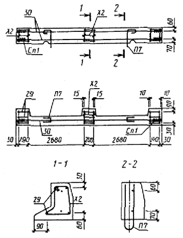 2. Армирование камней длиной 3,0 м приведено на черт. 26 и 27; детали армирования приведены на черт. 28 - 32 и в табл. 13.