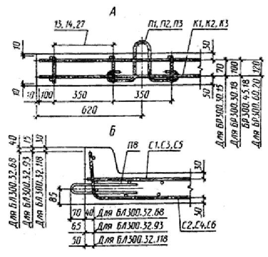 Армирование камней марок БЛ300.32.68, БЛ300.32.93 и БЛ300.32.118