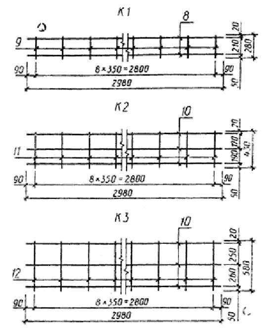 Арматурные каркасы К1, К2 и К3